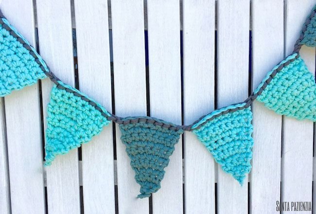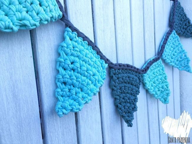 Video turial de cómo hacer banderines con trapillo a crochet: